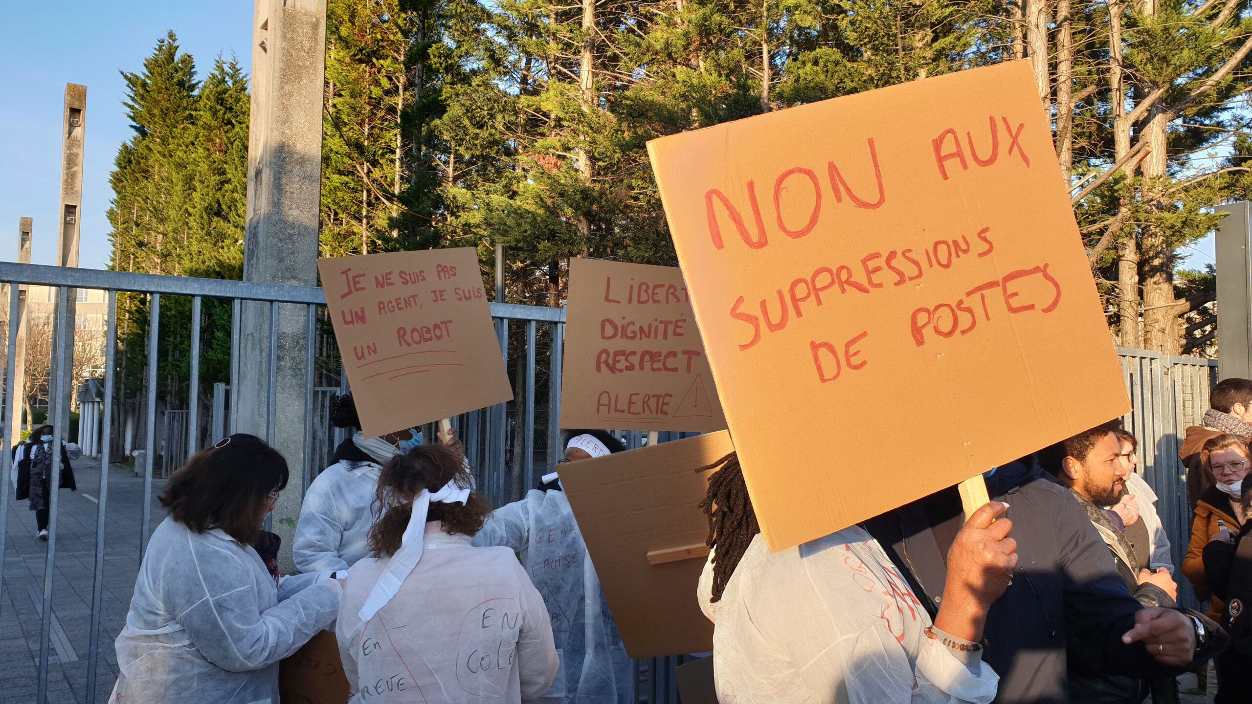 Après trois jours de grève, c’est 100% des agents qui sont mobilisés aujourd’hui, avec le soutien d’enseignants, d’élus et d’élèves en grand nombre.